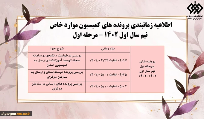 اطلاعیه کمیسیون موارد خاص مرحله اول 2