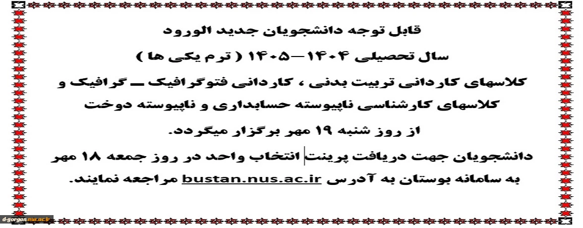 اطلاعیه دانشجویان جدید الورود سال تحصیلی ۱۴۰۵-۱۴۰۴ 2
