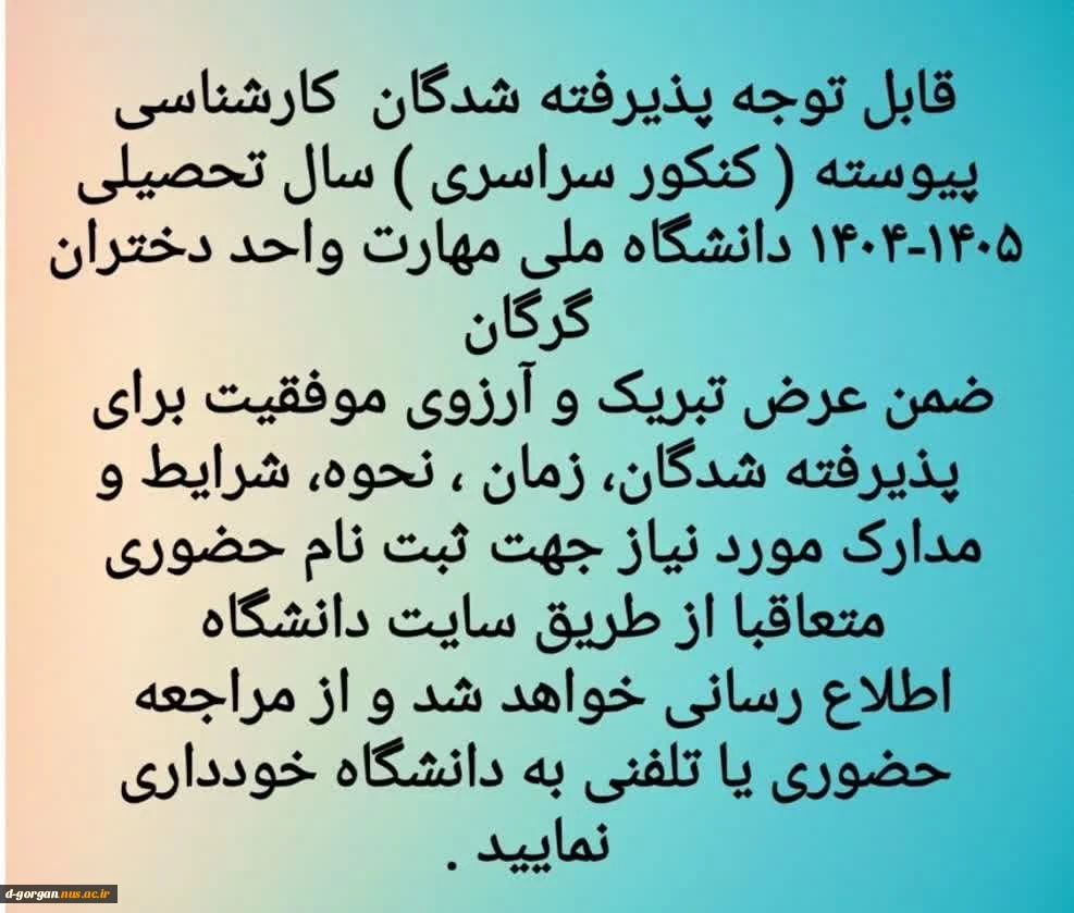 امتیاز دهید : اطلاعیه شماره 9 ثبت نام (ویژه پذیرفته شدگان کارشناسی پیوسته) 2 دوشنبه 21 مهر 1404 ساعت 7:36