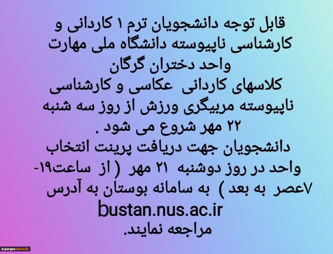 امتیاز دهید : قابل توجه دانشجویان ترم ۱ کاردانی عکاسی و کارشناسی ناپیوسته مربیگری ورزش دانشگاه ملی مهارت واحد دختران گرگان 2 دوشنبه 21 مهر 1404 ساعت 20:14