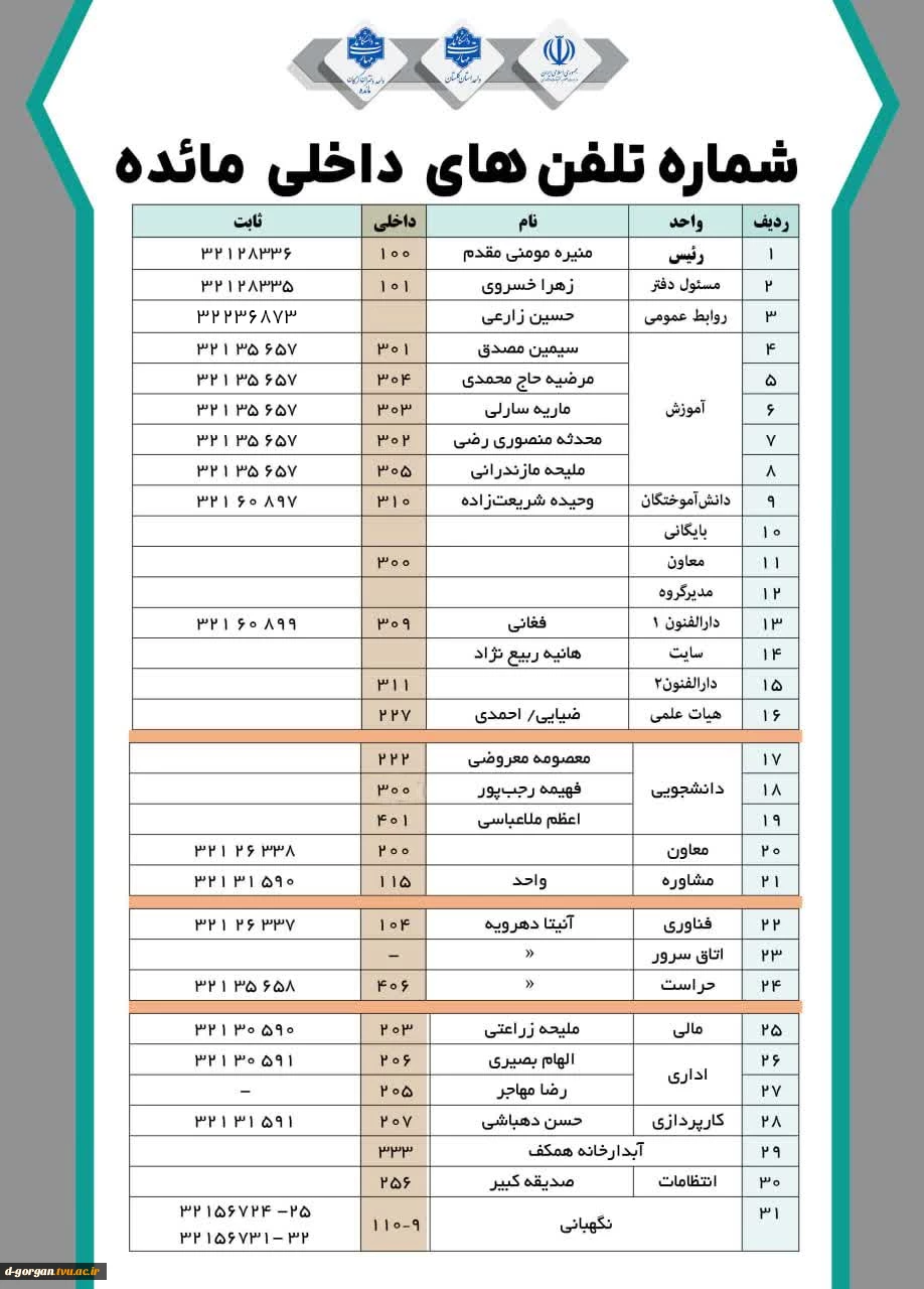 شماره تماس واحدهای آموزشکده دختران گرگان مائده