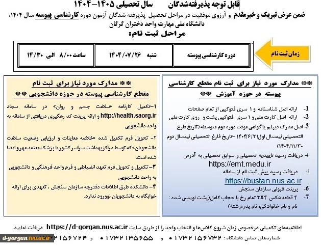امتیاز دهید : اطلاعیه شماره 10ثبت نام (ویژه کارشناسی پیوسته مهر و بهمن 1404) 2 پنجشنبه 24 مهر 1404 ساعت 12:15