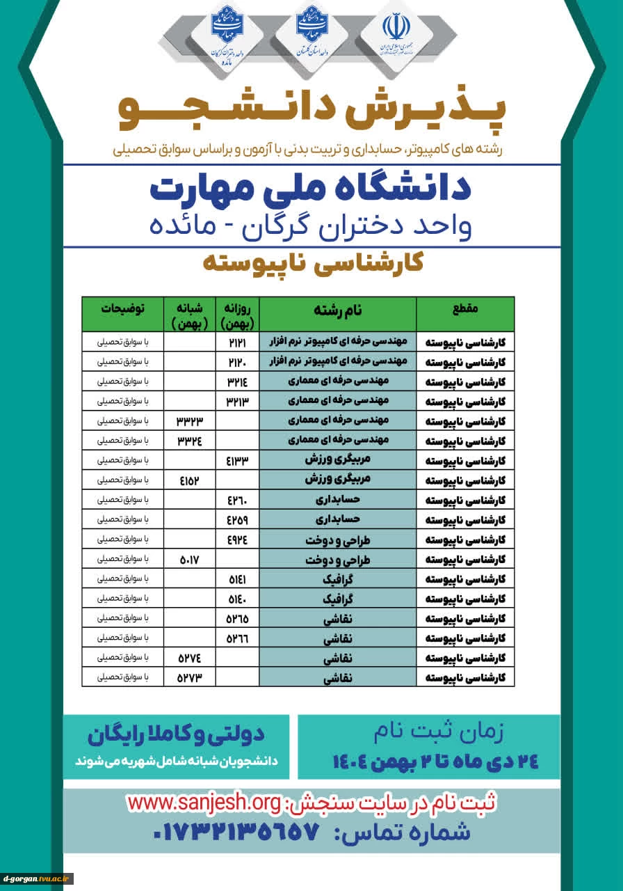 پذیرش دانشجوی کارشناسی نا پیوسته - تکمیل ظرفیت 2