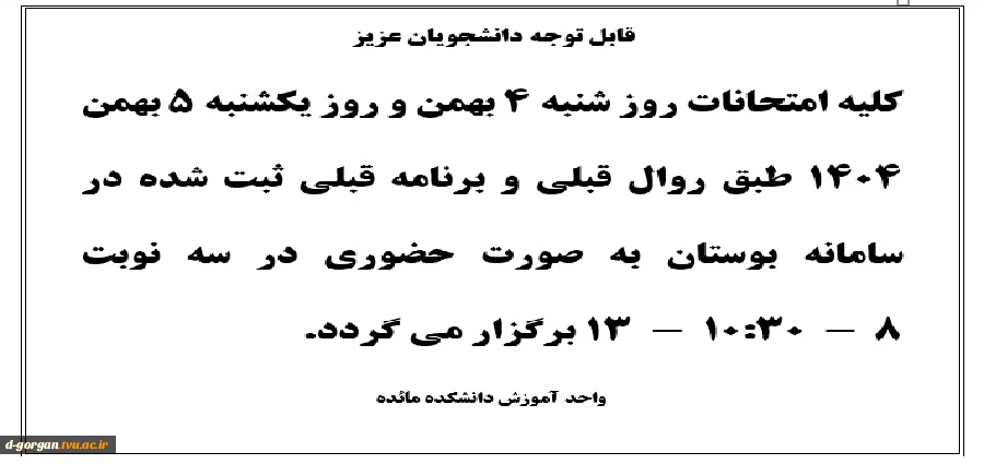 اطلاعیه شماره 3 امتحانات ترم 041 2