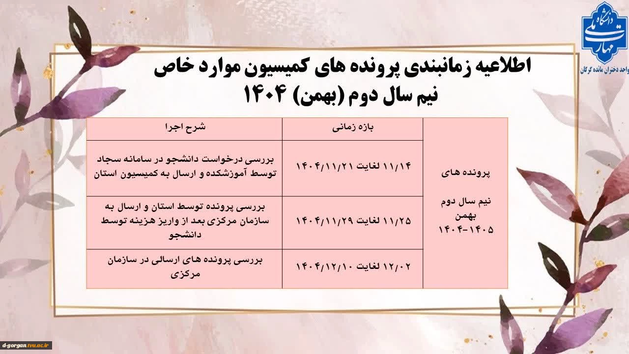 امتیاز دهید : اطلاعیه زمانبندی پرونده های کمیسیون موارد خاص نیمسال دوم (بهمن) 1404 2 پنجشنبه 2 بهمن 1404 ساعت 19:28