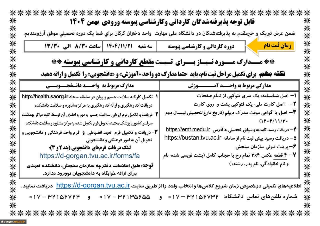 امتیاز دهید : قابل توجه پذیرفته شدگان کاردانی پیوسته و کارشناسی پیوسته - ورودی بهمن 1404 2 یکشنبه 12 بهمن 1404 ساعت 10:03