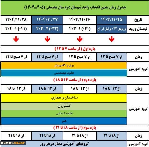 جدول بازه زمانی انتخاب واحد ترم 042 2